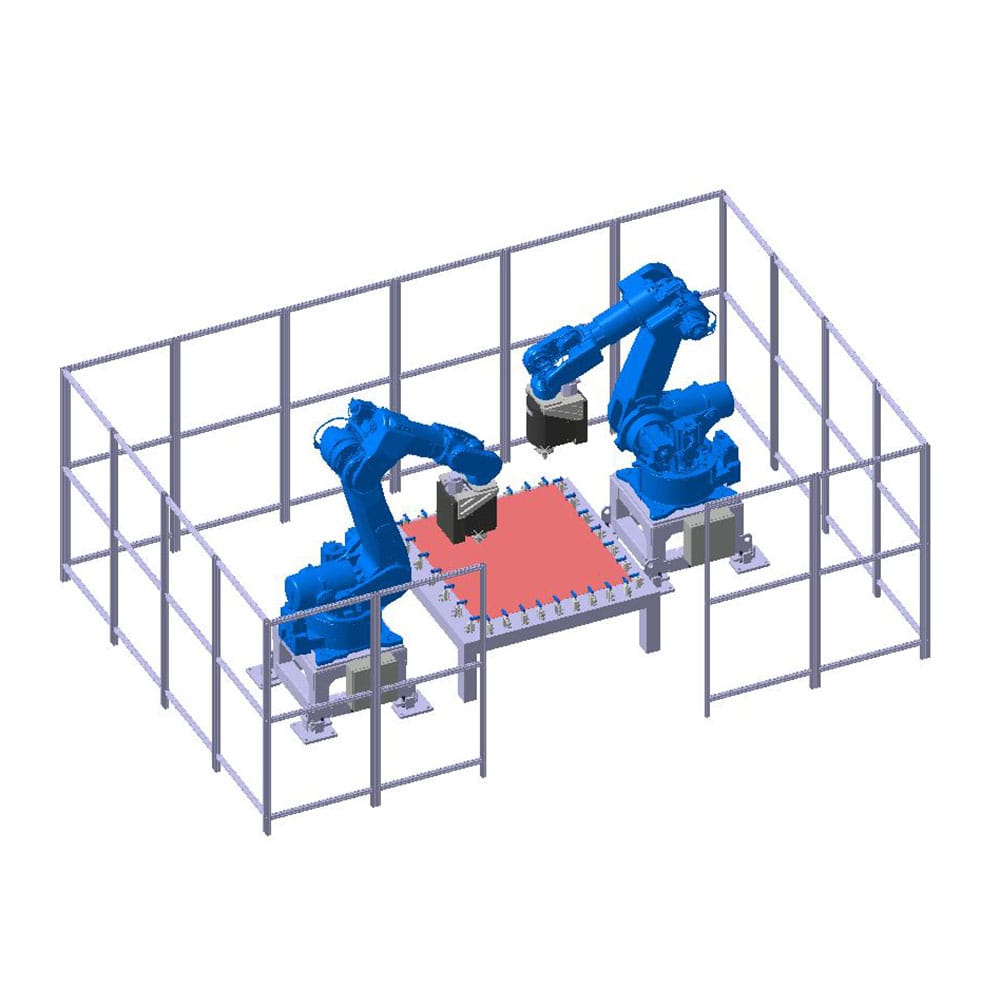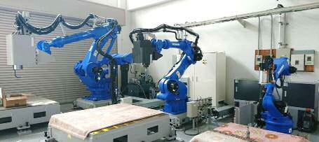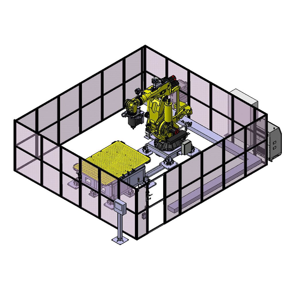 電気自動車の電池ケース等大型製品に対し、ロボットは可動範囲が大きいため対応が容易。複数のロボットでの同時加工による、加工時間短縮も可能。全自動ラインへの組込にも最適。加工機仕様と比較し、スペース効率も良いです。仕様により、導入コスト低減の効果もあります。