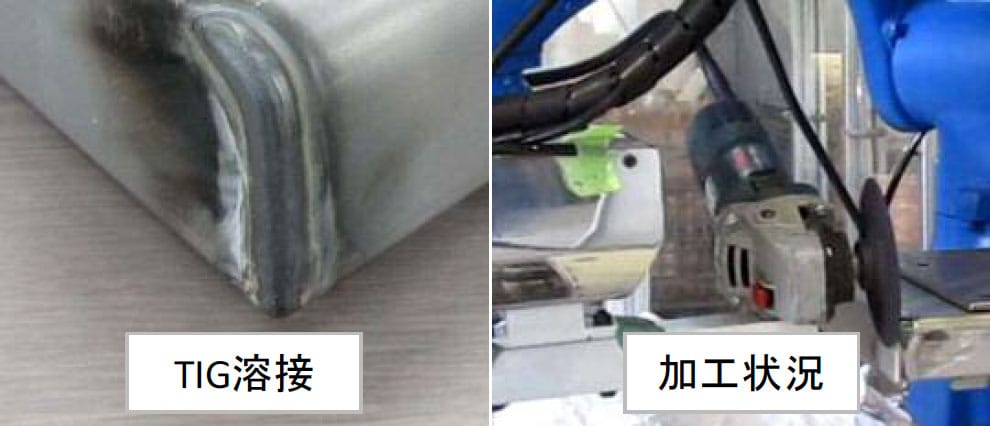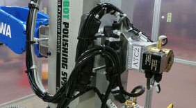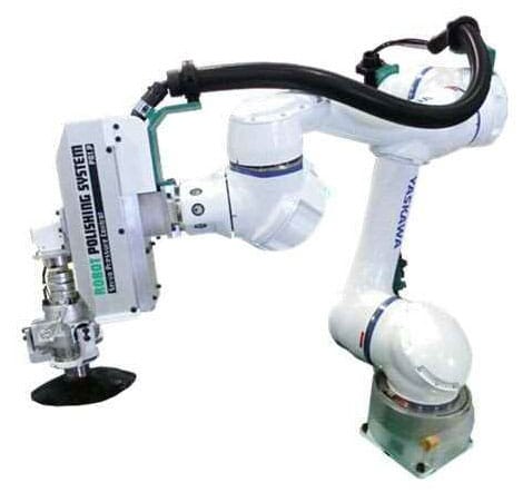 従来、熟練作業者により行われていた研磨加工のロボット化を実現したシステム。平滑面加工を行うために開発されたロボットポリッシングシステム用ヘッドは、ディスクサンダー、ベルトサンダーなどの様々な研磨加工ツールの装着が可能であり、研磨加工ツールの重量影響や、加工方向での重力影響を最小化し、一定の加圧制御を保持する機能により、高品質な研磨加工ができます。またサーボモータのトルク制御を基本とした加圧制御システムの為、研磨加工ツールで発生する振動影響を受けにくいという特徴があります。研削用砥石を使用した荒削り加工から、サンドペーパーを使用したサンディング加工、液状研磨剤と研磨用パッドを使用したポリッシング加工まで幅広い加工に適用できます。