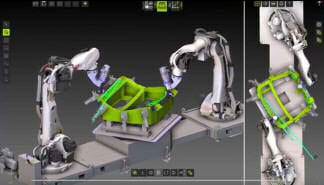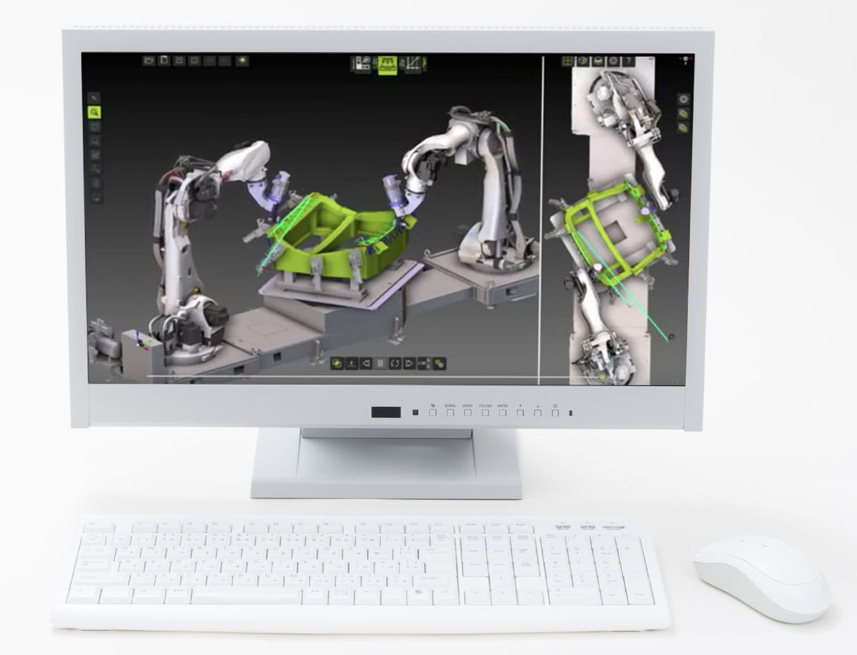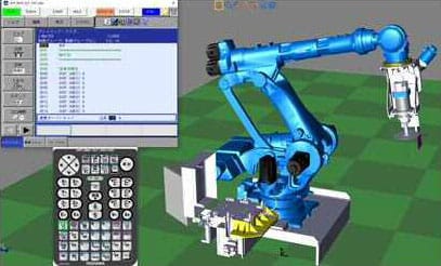 現在、産業用ロボットのティーチングは、ティーチングペンダントによる実機ティーチでの作業は減少し、PC上のヴァーチャル空間上に再現したロボットシステム環境の中でシミュレーションを行い、そのデータを実機にインストールするというオフラインティーチングが一般的になっています。